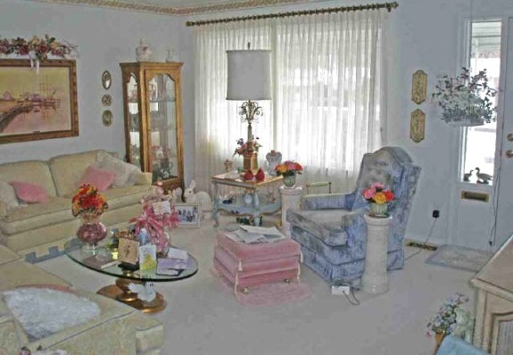 The bottom line is that one man’s ticky tacky is another man’s happy crappy. There is no right or wrong. It is subjective and what resonates with one person can cause another person to whince. Let me just share a few home pics that share a decorating style that is warm, happy and very pretty to many people. However, I seldom see these types of room schemes in the mags and the blogs. The important fact is that some awesome people live in these homes and rooms. One room could be Great Aunt Mimi’s livingroom, another can be the kitchen of the neighborhood woman who always bought your Girl Scount cookies and another might be the yard of the couple who always waved and wished you a great day when you passed them and their abode.
