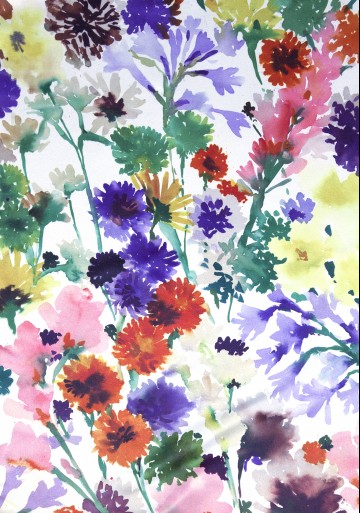 I stumbled upon the work of this artist just a few months ago on Pinterest. I saw one abstract painting in blue that looked like a an indigo dye batik fabric. I clicked on the link to her website. I spent the new hour pouring through all of the beautiful watercolor paintings on her site. They can so easily be applied to any end use; fabric, china, greeting card, nail art and anything one can imagine. I am not sure why I have never heard of her and her work. Peruse the site and read the “About’ and “faq” sections to get a better feel for who she is.