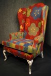 Mod Gren Pod came upon the scene about four years ago with a printed organic cotton line that uses a heavy and strong enough sheeting to consider the pieces suitable for upholstery. It was the first line with bold color, trendy designs and large repeats. About a year earleir than this Harmony Arts introduced a printed organic cotton sateen line that I feel is better for top of the bed and linens , rather than upholstery end use. The repeats are small and can dwarf a large piece of furniture and a sateen basecloth can snag easily. The biggest concern I have all printed designs for upholstery end use is that prints are not as stable as wovens in terms on their potential to fade, crock and frost. So, if you do use a print on an upholstered piece, make it a piece that doesn’t get everyday use and isn’t directly exposed to sunlight and gas fumes.